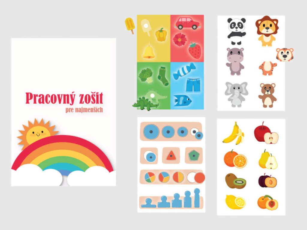 Ideálny zošit pre detičky, ktoré sa zoznamujú so svetom farieb, tvarov a základných pojmov. Na desiatich stranách (vo veľkosti A4) deti čakajú jednoduché, ale pútavé aktivity so suchým zipsom zamerané na farby, tvary, zvieratká, veľkosti či ovocie a zeleninu.