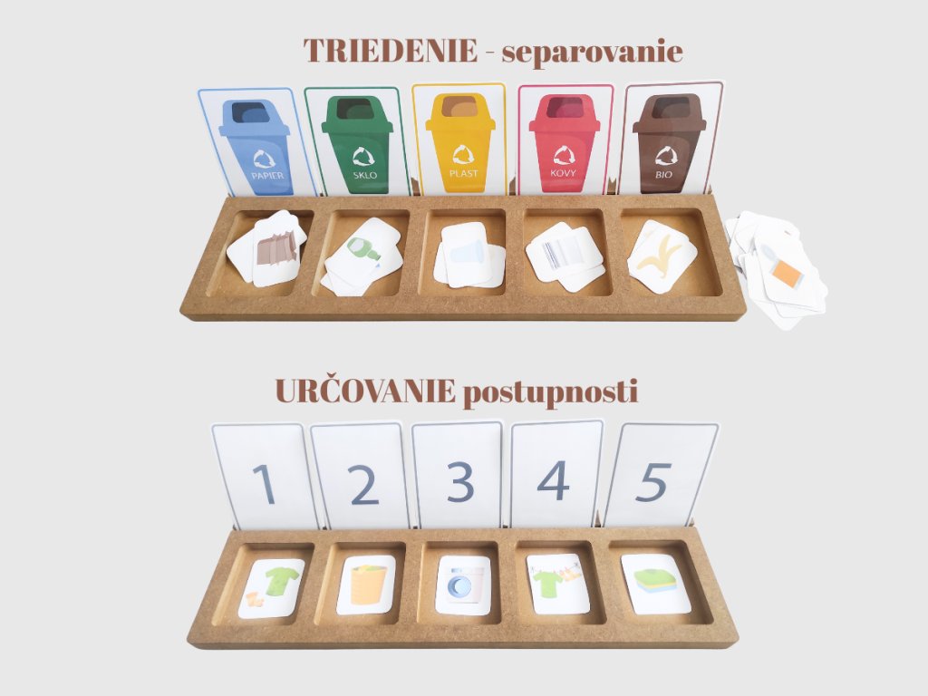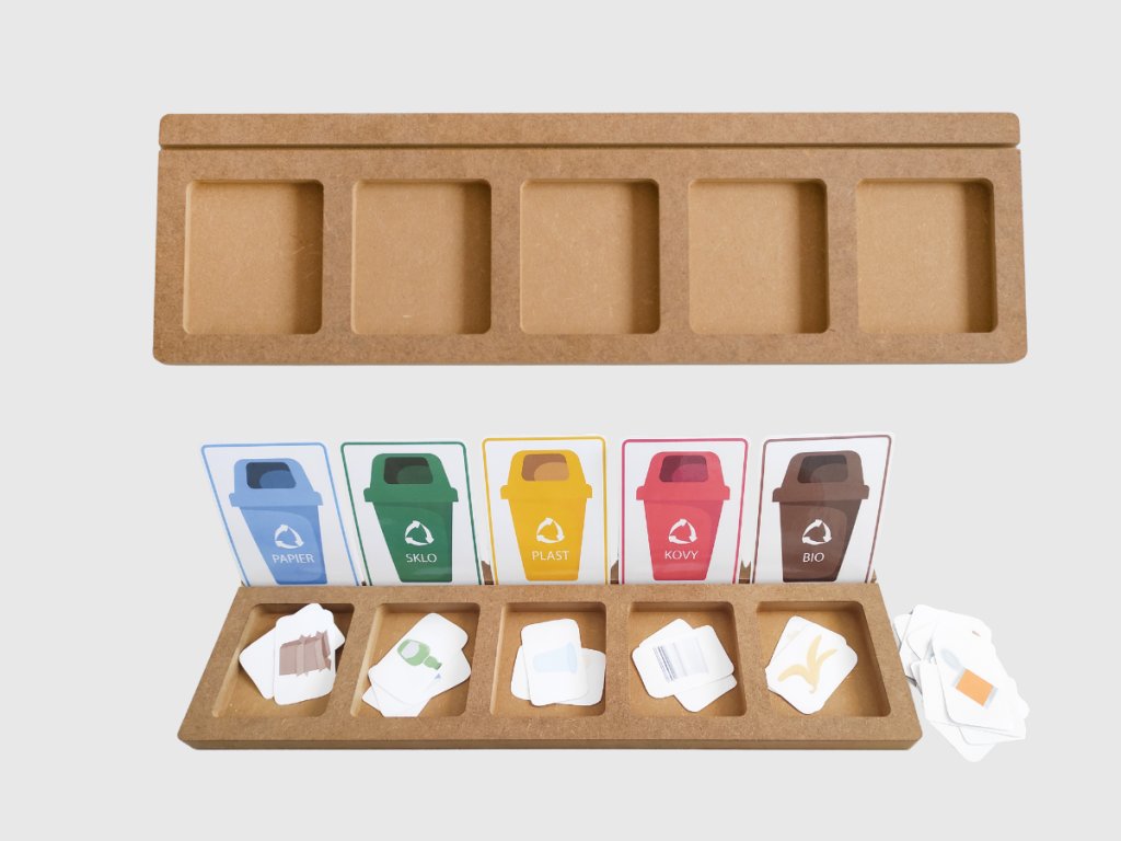 🗑️ Separovanie (30 kartičiek)– triedenie odpadu podľa farby koša (papier, plast, sklo…).